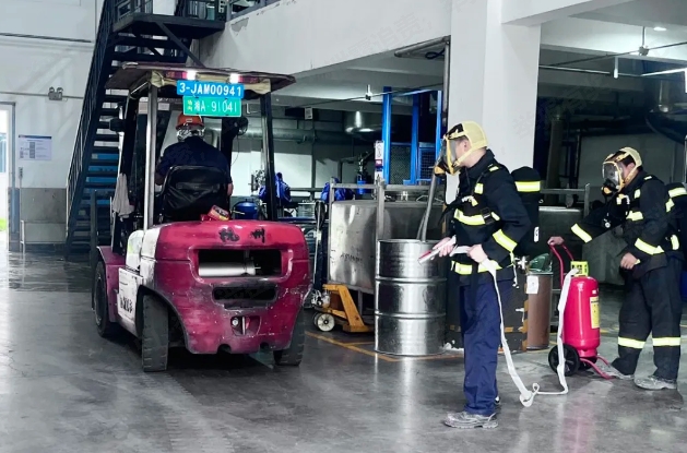 賽事以團隊形式展開,來自倉儲物流一線的九名骨干員工,組成三支精干隊伍同臺競技。嚴格模擬真實火場救援環境,設置了五項核心實戰科目:快速精準穿戴個人防護裝備、熟練佩戴正壓式空氣呼吸器、高效連接消防水槍、精準實施水槍噴射滅火、以及迅速搶救現場物資。