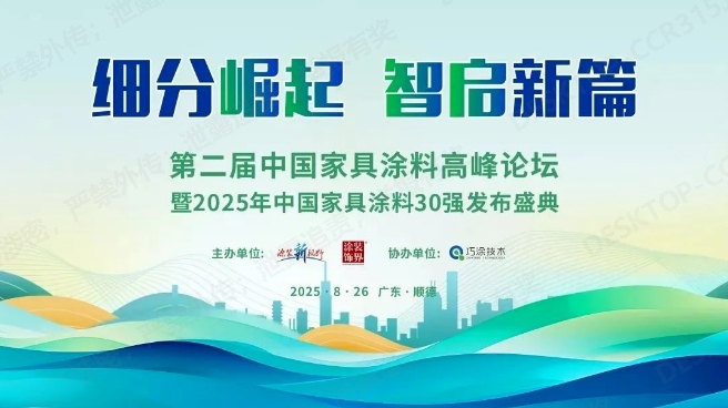 本屆盛會以"細分崛起,智啟新篇"為主題,匯聚了行業(yè)權(quán)威專家、領(lǐng)軍企業(yè)代表及產(chǎn)業(yè)鏈精英百余人。《涂裝新視野》重磅發(fā)布的"2025中國家具涂料綜合競爭力30強"主榜單及細分榜單,成為衡量企業(yè)實力的重要標尺,被譽為中國家具漆行業(yè)發(fā)展的"風向標"。