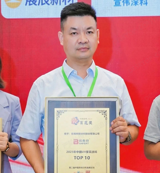 8月26日,佛山順德第二屆中國家具涂料高峰論壇傳來捷報,邦弗特憑借卓越的綜合實力和創(chuàng)新能力,榮登"2025中國UV家具涂料TOP10"榜單,彰顯行業(yè)領(lǐng)軍地位。